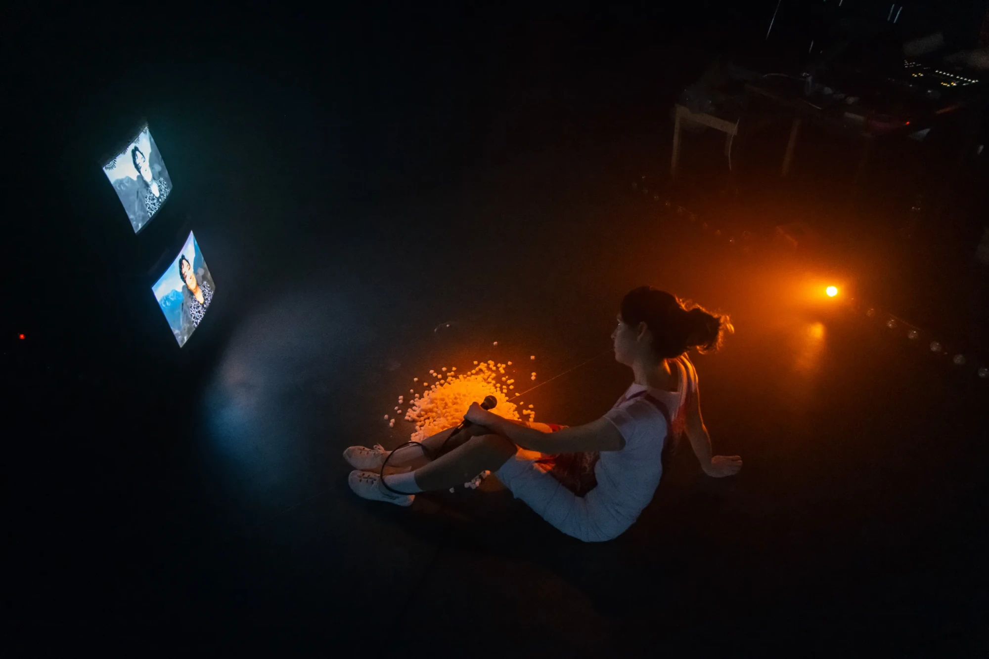 V inscenaci se používají blikající světla.